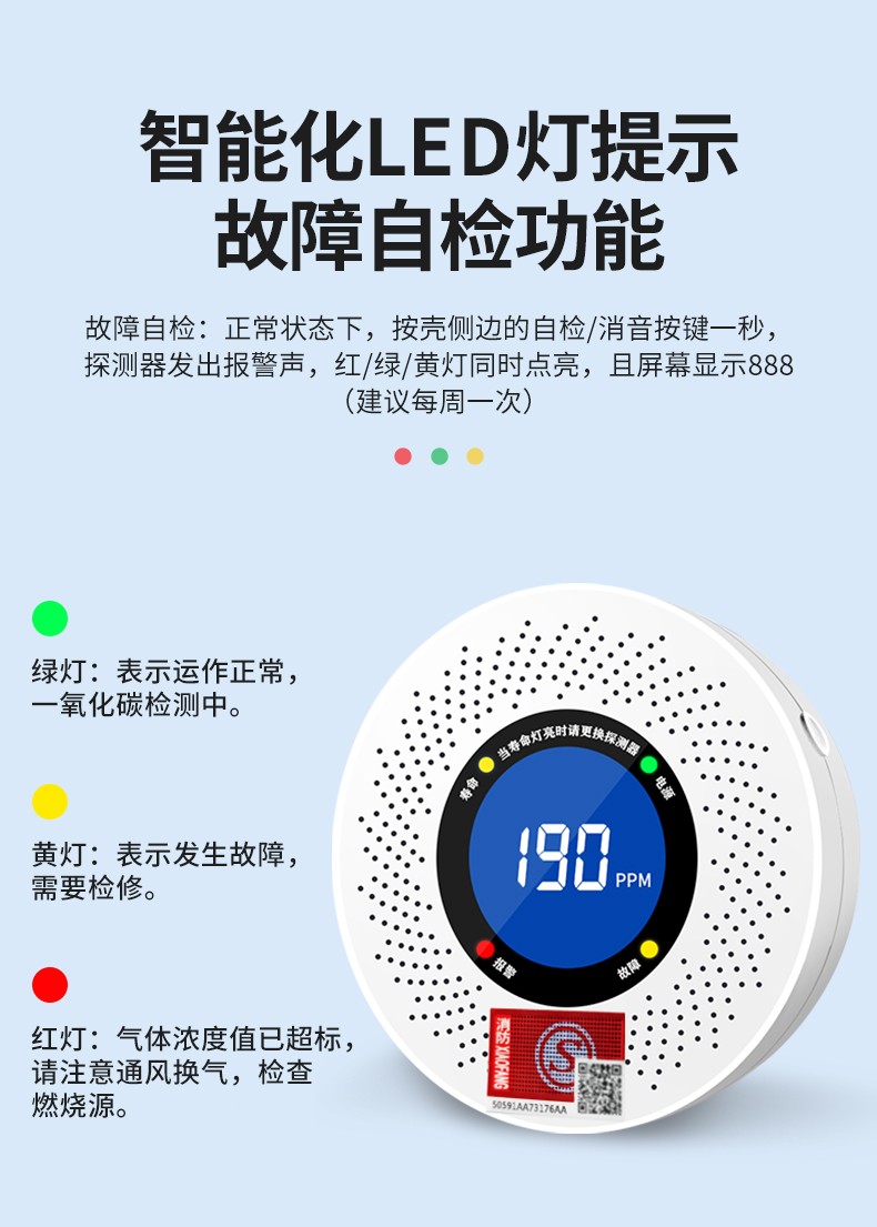 一氧化碳報(bào)警器(型號(hào)PA-007) 產(chǎn)品規(guī)格 功能特點(diǎn) 資料下載 一氧化碳報(bào)警器(型號(hào)PA-007)1.探測(cè)氣體:一氧化碳2.報(bào)警方式:高音報(bào)警、聲光報(bào)警3.材質(zhì):ABS阻燃材質(zhì)4.產(chǎn)品保險(xiǎn):1000萬(wàn)承險(xiǎn)適用場(chǎng)景:適用于廚房、浴室、起居室、火鍋包廂、飯?zhí)玫乳L(zhǎng)時(shí)間空氣不流通的場(chǎng)所安裝一氧化碳報(bào)警探測(cè)器