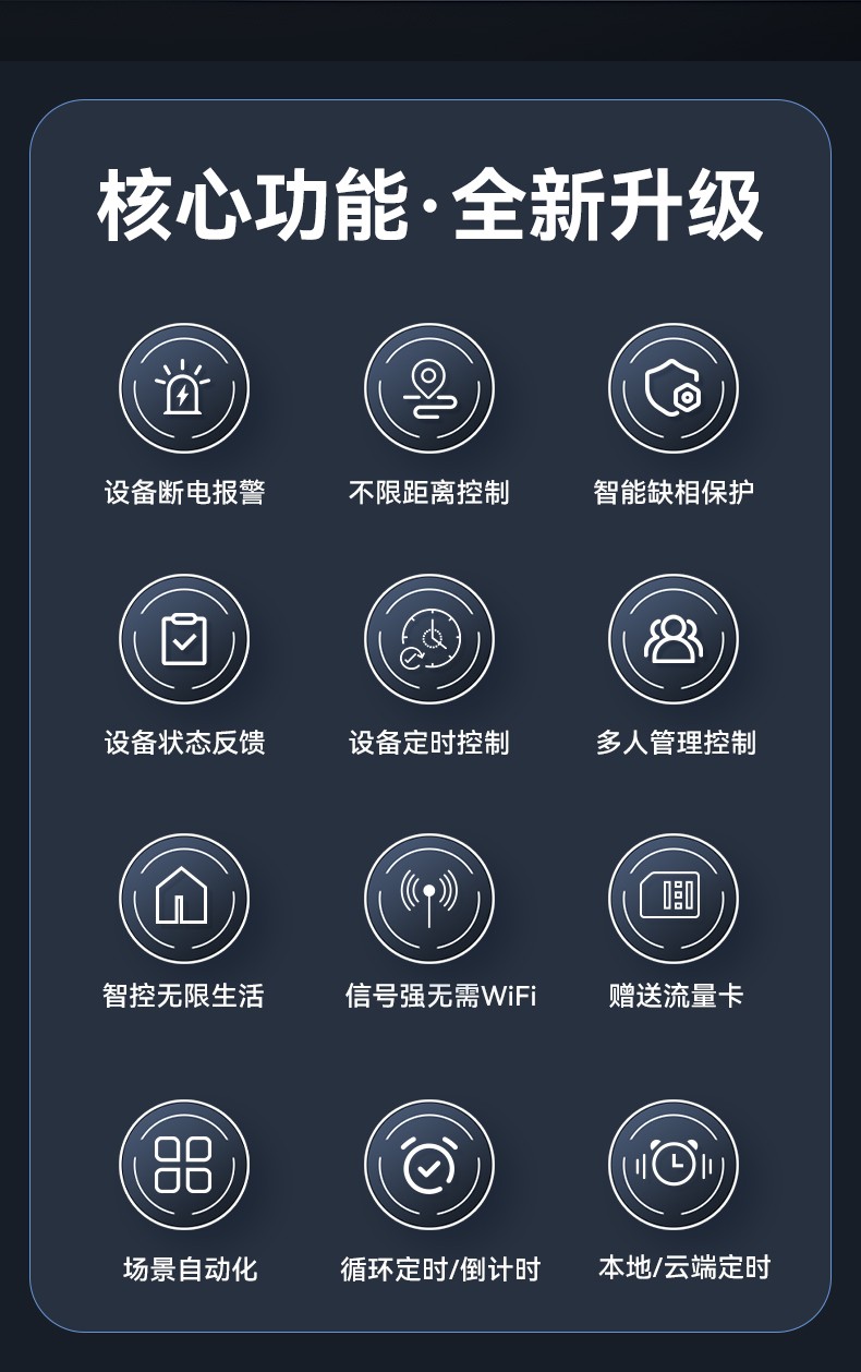 應(yīng)用場(chǎng)景:家具電器、農(nóng)田灌溉、工廠機(jī)房設(shè)備電機(jī)、水泵、機(jī)械設(shè)備、路燈控制等